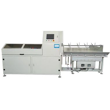 Les opérateurs peuvent programmer les longueurs de noyau requises et leurs quantités sur l'interface à écran tactile, après avoir introduit les noyaux parents sur le chargeur de trémie, le coupeur de noyau entièrement automatique peut fonctionner automatiquement pour tirer le noyau dans la machine, en calculant automatiquement la longueur du noyau parent, et commencez à couper.